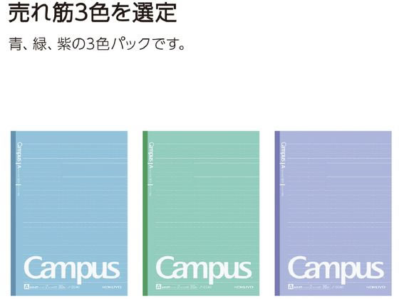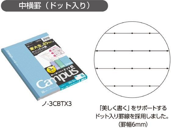 コクヨ キャンパスノート (ドット入罫線) B罫 3色パック ノ-3CBTX3 1パック(ご注文単位1パック)【直送品】