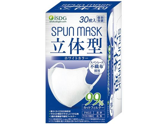 医食同源 SPUN MASK 立体型 ホワイト 30枚入 1箱(ご注文単位1箱)【直送品】