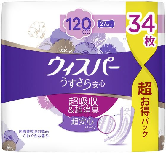 P&G ウィスパ- うすさら安心 多いときでも 120cc 34枚 1パック(ご注文単位1パック)【直送品】