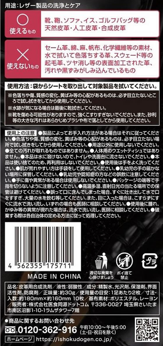 医食同源ドットコム 拭くノ助 レザーシューズクリーナー10枚 1個(ご注文単位1個)【直送品】