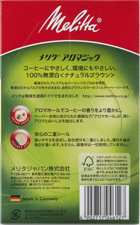 メリタ ペーパーフィルター アロマジック 1×2 ナチュラルブラウン 100枚 1箱(ご注文単位1箱)【直送品】