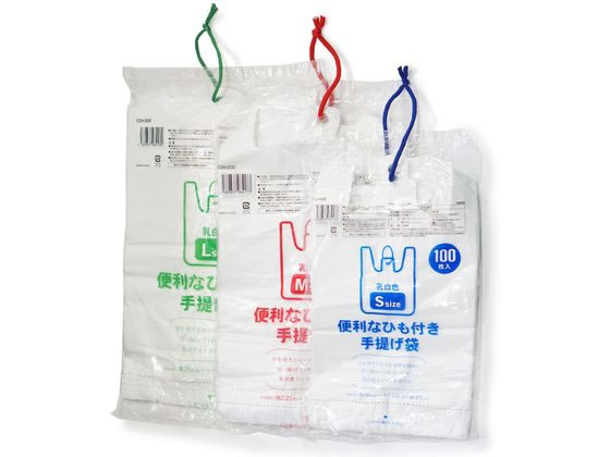システムポリマー ひも付き手提げ袋 乳白半透明 M 100枚 1袋(ご注文単位1袋)【直送品】
