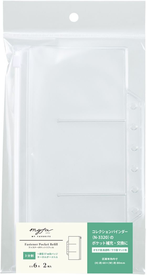 リヒトラブ myfa ファスナーポケットリフィル 3分割 缶バッジ 2枚 N3362 1パック(ご注文単位1パック)【直送品】