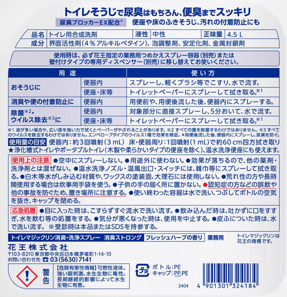 KAO トイレマジックリン洗浄・消臭スプレー消臭ストロング 業務用 4個 1箱(ご注文単位1箱)【直送品】