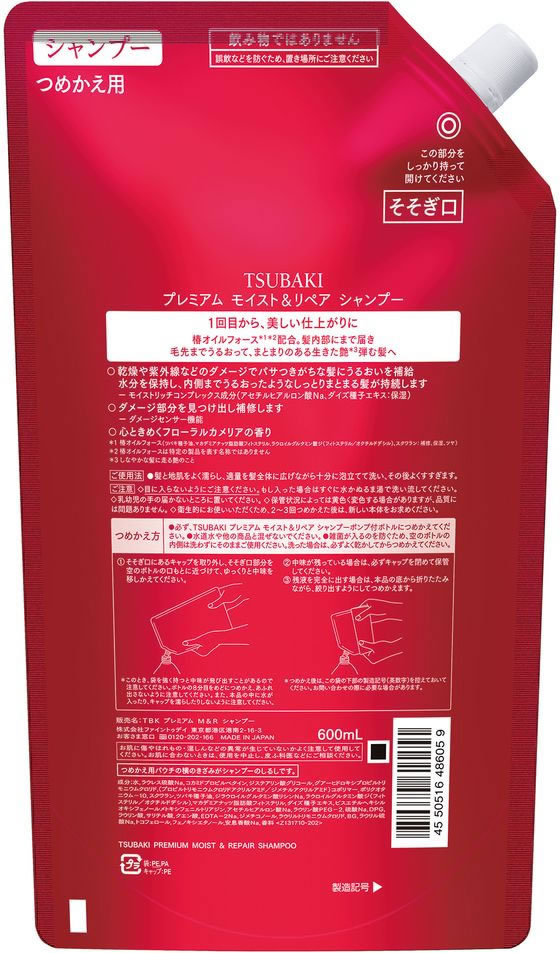 TSUBAKI プレミアム モイスト&リペア シャンプー 詰替 600mL×9個 1箱(ご注文単位1箱)【直送品】