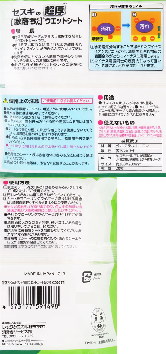 レック 激落ちくん セスキ超厚ウエットシート 20枚 C00275 1個(ご注文単位1個)【直送品】