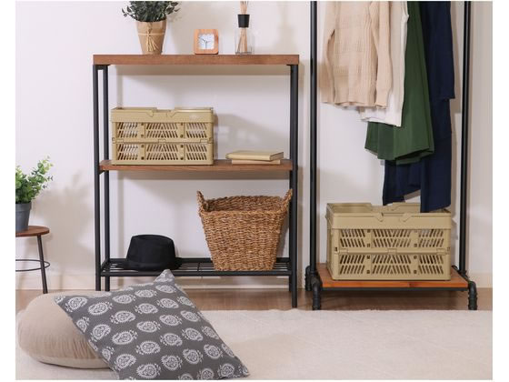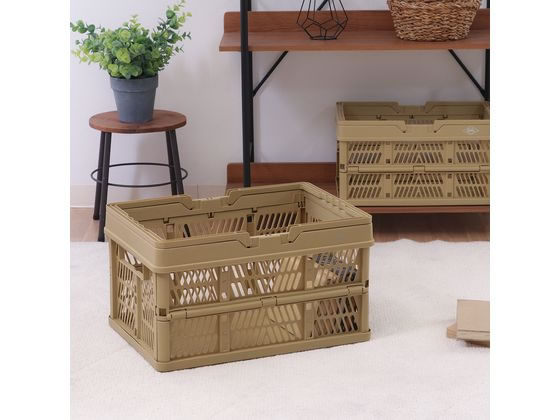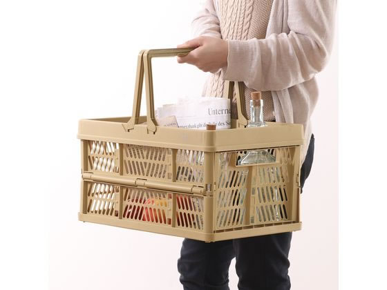 不二貿易 折りたたみコンテナ L ベージュ 86451 1個(ご注文単位1個)【直送品】