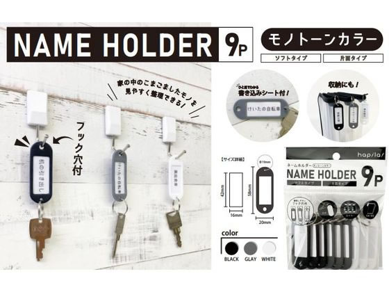ハピラ ネームホルダー ソフトタイプ 9個入 モノトーン KT06 1パック(ご注文単位1パック)【直送品】