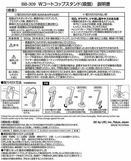 レック Wコートコップスタンド(吸盤) BB-309 1個(ご注文単位1個)【直送品】