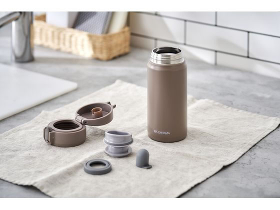 アイリスオーヤマ ステンレスマグボトル ワンタッチ モカ 0.35L 1個(ご注文単位1個)【直送品】