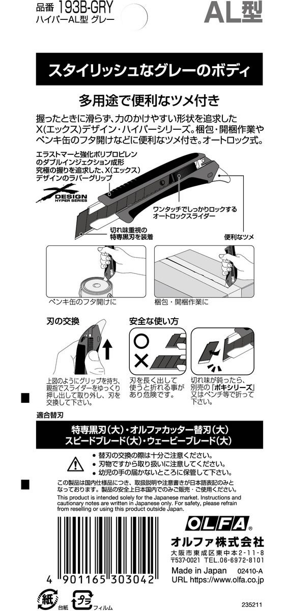 オルファ ハイパーAL型 グレー 193B-GRY 1本(ご注文単位1本)【直送品】