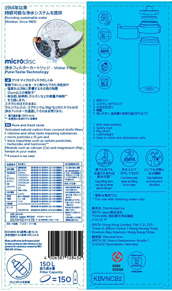 ブリタジャパン ボトル型浄水器 ライトブルー 0.6L 1個(ご注文単位1個)【直送品】