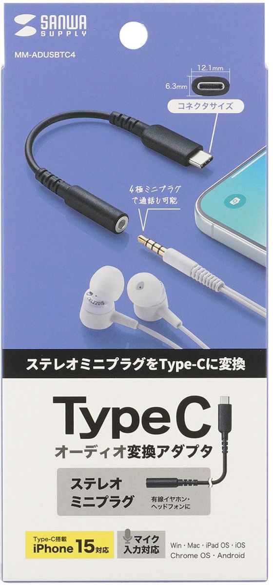 サンワサプライ Type-Cオーディオ変換アダプタ ケーブル MM-ADUSBTC4 1個(ご注文単位1個)【直送品】