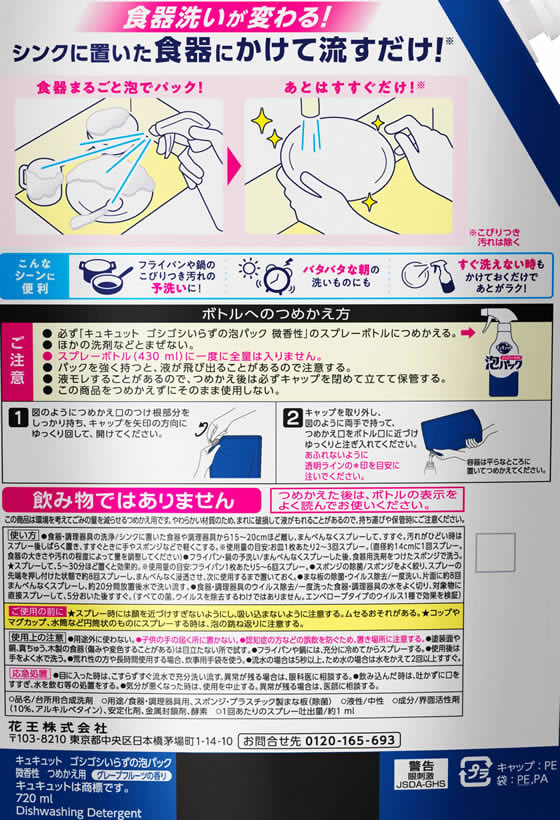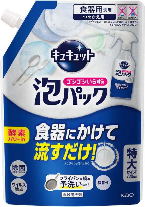KAO キュキュット ゴシゴシいらずの泡パック 微香性 詰替 720mL 1本(ご注文単位1本)【直送品】