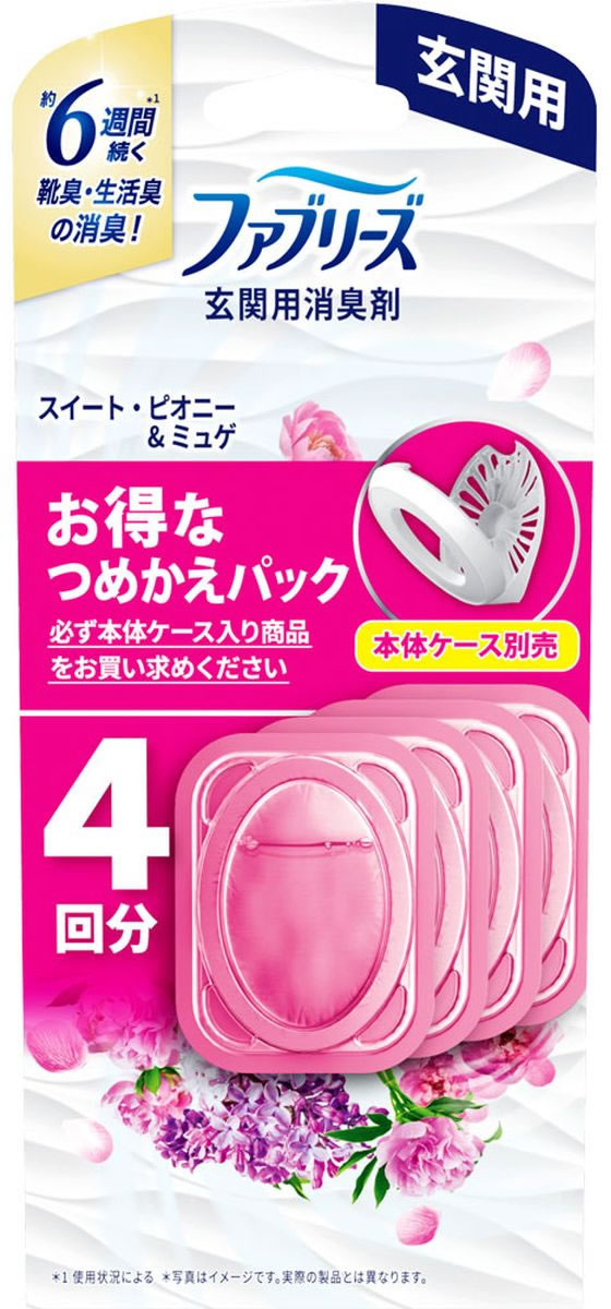 P&G ファブリーズ 玄関用消臭剤 スイート・ピオニー&ミュゲ 詰替 4個 1パック(ご注文単位1パック)【直送品】