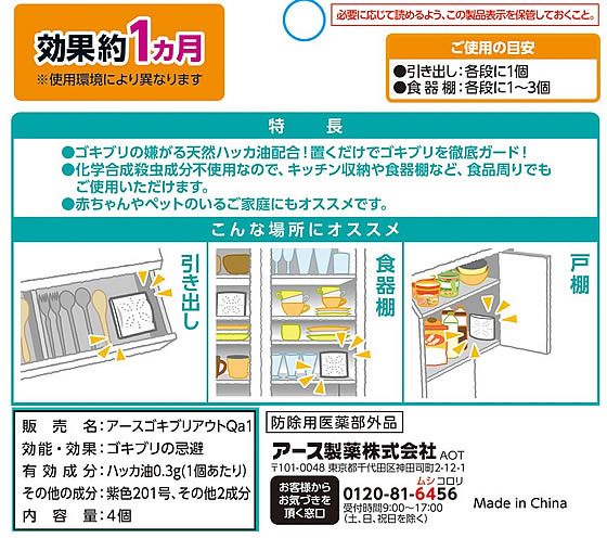 アース製薬 ゴキブリよけ キッチン収納・食器棚用 4個 1箱(ご注文単位1箱)【直送品】