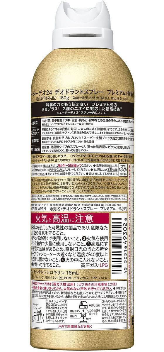 ファイントゥデイ Agデオ24 デオドラントスプレー プレミアム 無香料 LL 1個(ご注文単位1個)【直送品】