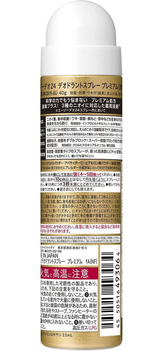 ファイントゥデイ Agデオ24 デオドラントスプレー プレミアム 無香料 S 1個(ご注文単位1個)【直送品】