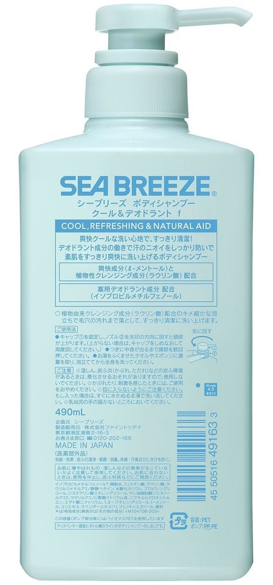 ファイントゥデイ シーブリーズ ボディシャンプー クール&デオドラント 490mL 1個(ご注文単位1個)【直送品】