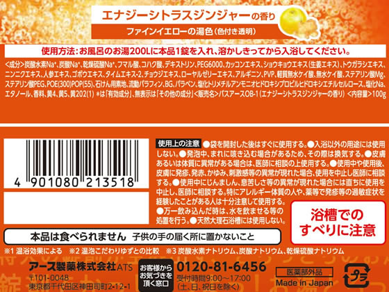 アース製薬 温泡 デカまる エナジーシトラスジンジャーの香り 1錠 1錠(ご注文単位1錠)【直送品】