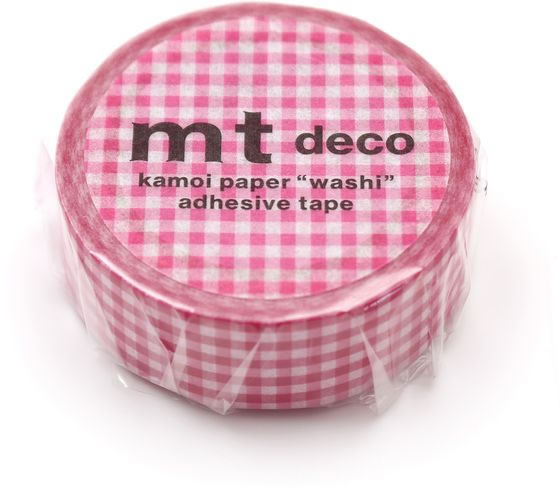 カモ井 mt 1P 細かいギンガムチェック・ピンク 15mm×7m MT01D564 1巻(ご注文単位1巻)【直送品】