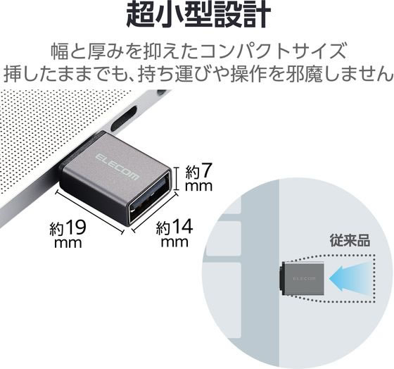 エレコム TypeC変換アダプタ(AtoC) 超小型 ブラック M-AFCMADBK 1個(ご注文単位1個)【直送品】