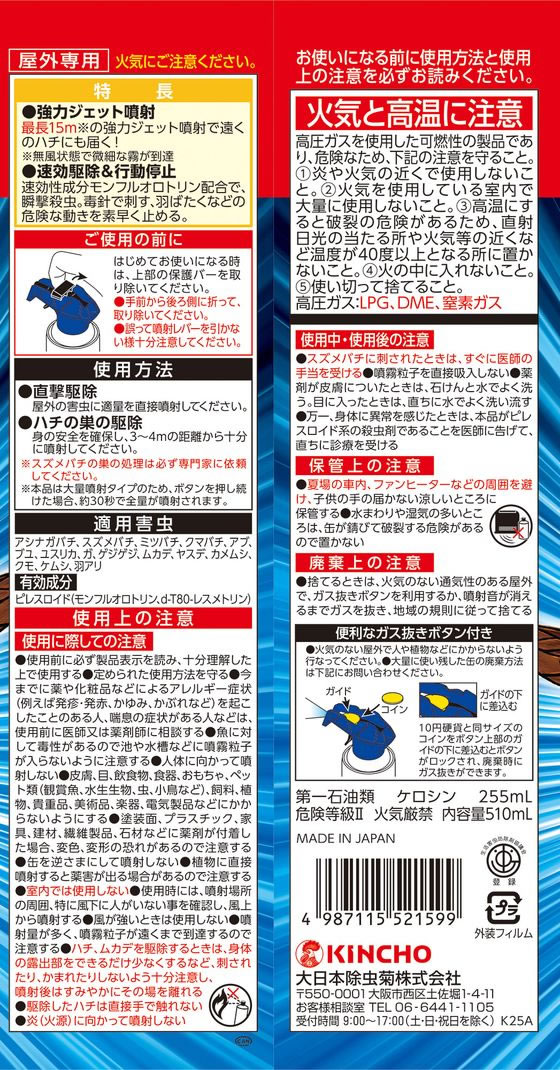 金鳥 スズメバチ キンチョールジェット 510mL 1本(ご注文単位1本)【直送品】