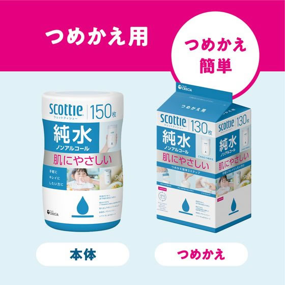 クレシア スコッティ ウェットティシュー 純水 ノンアルコール 130枚 詰替用 1パック(ご注文単位1パック)【直送品】