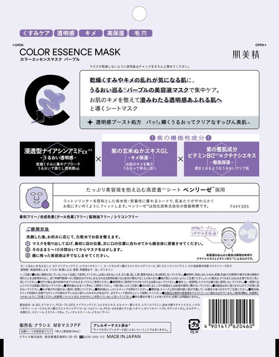 クラシエ 肌美精 カラーエッセンスマスク パープル 7枚 1個(ご注文単位1個)【直送品】