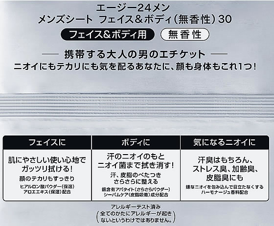 ファイントゥデイ Agデオ24メン メンズシート フェイス&ボディ用 無香 30枚 1個(ご注文単位1個)【直送品】