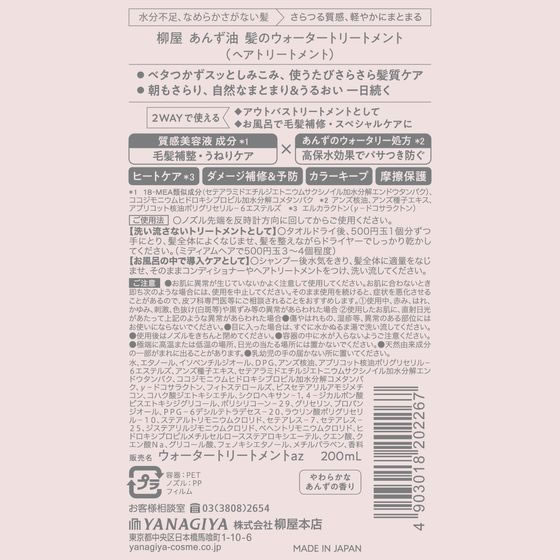 柳屋本店 柳屋あんず油 髪のウォータートリートメント 200mL 1個(ご注文単位1個)【直送品】