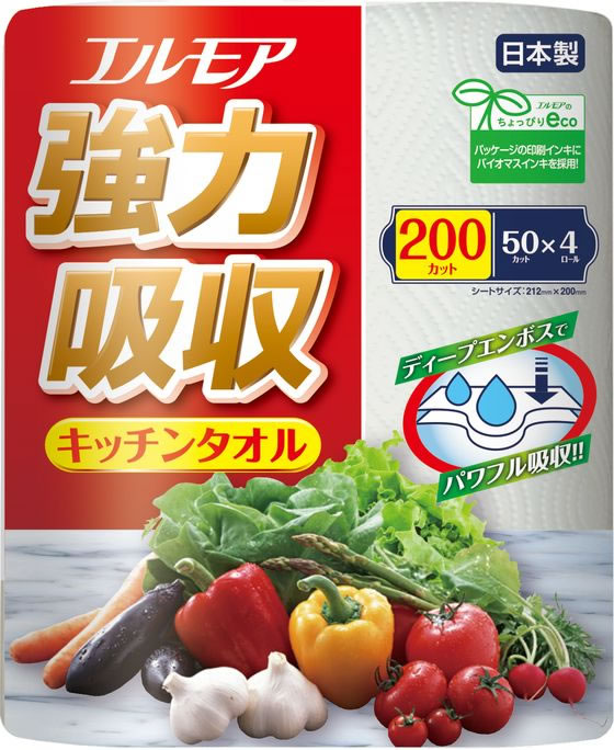 カミ商事 エルモア強力吸収キッチンタオル 50カット 4ロール 1パック(ご注文単位1パック)【直送品】