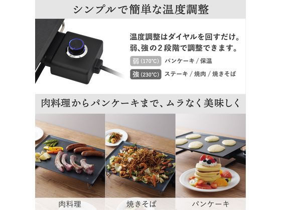 THANKO 薄型ホットプレート Everill 「エヴリル」ブラック HPLT24HBK 1台(ご注文単位1台)【直送品】