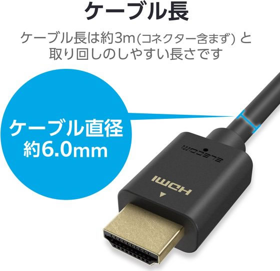 エレコム HDMI 1.4 ケーブル ハイスピード 3m ブラック GM-HD14E30BK 1個(ご注文単位1個)【直送品】