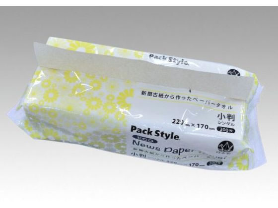 パックスタイル ニュースペーパータオル 小判 再生紙 200枚 1袋(ご注文単位1袋)【直送品】