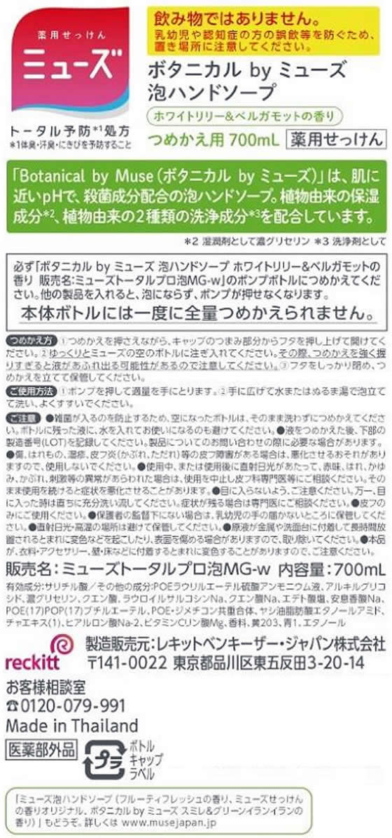 レキットベンキーザー 泡ミューズ ホワイトリリー&ベルガモット 詰替 700mL 1個(ご注文単位1個)【直送品】
