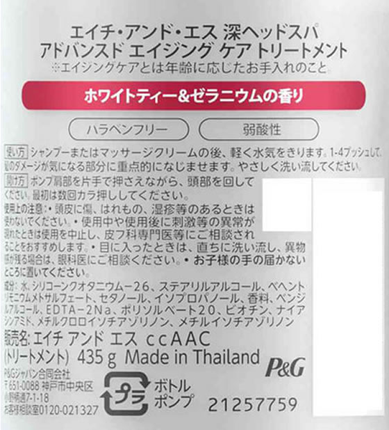 P&G 深ヘッドスパ byh&s エイジングケア トリートメント 本体 435G 1本(ご注文単位1本)【直送品】