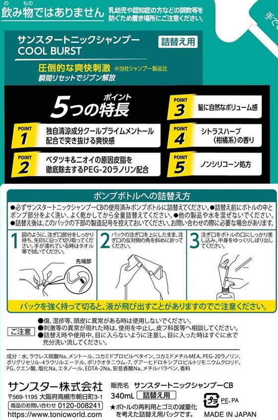 サンスター トニックシャンプー 詰替 340mL 1個(ご注文単位1個)【直送品】