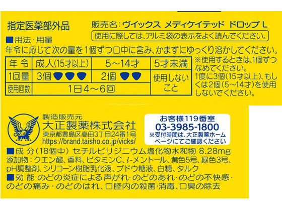 大正製薬 ヴイックスメディケイテッドドロップ レモン 20個入 5554 1箱(ご注文単位1箱)【直送品】