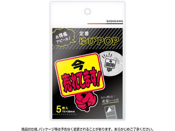 ササガワ ゆびPOP プラカード 今売れてます! 5枚入 13-4283 1パック(ご注文単位1パック)【直送品】