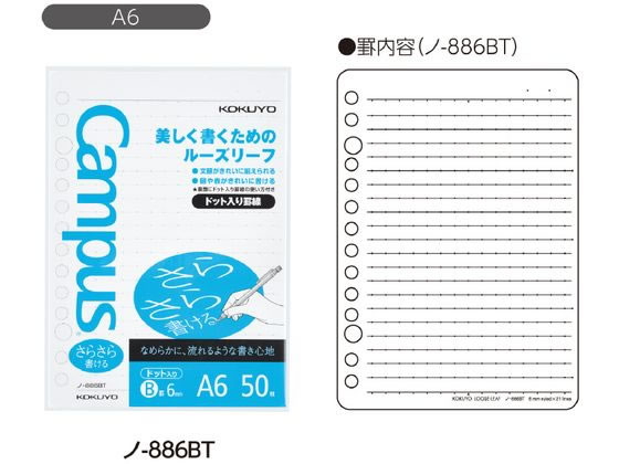 コクヨ キャンパスルーズリーフ B罫 ドット入り A6 50枚 1冊(ご注文単位1冊)【直送品】