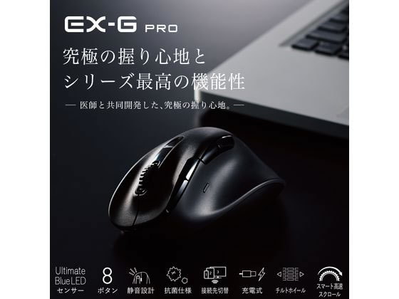エレコム 無線マウス EX-G PRO Bluetooth 8ボタン 充電式 M 黒 1個(ご注文単位1個)【直送品】