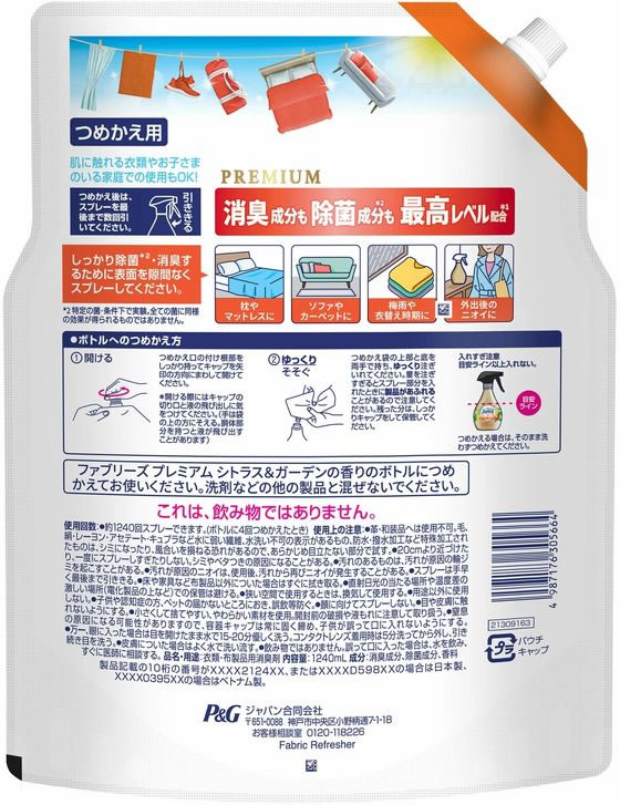 P&G ファブリーズ プレミアム シトラス&ガーデン 替 1240mL 1個(ご注文単位1個)【直送品】