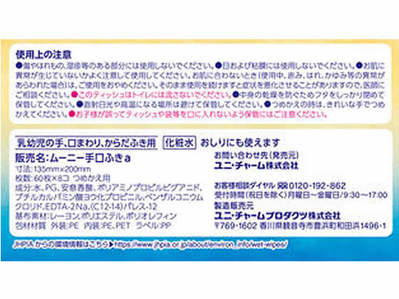 ユニ・チャーム ムーニー 手口ふき 詰替 58枚×8個 1パック(ご注文単位1パック)【直送品】