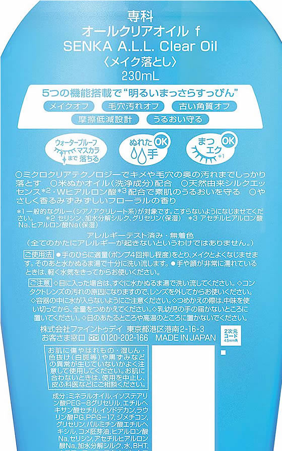 ファイントゥデイ 専科 オールクリアオイルf 230mL 1本(ご注文単位1本)【直送品】