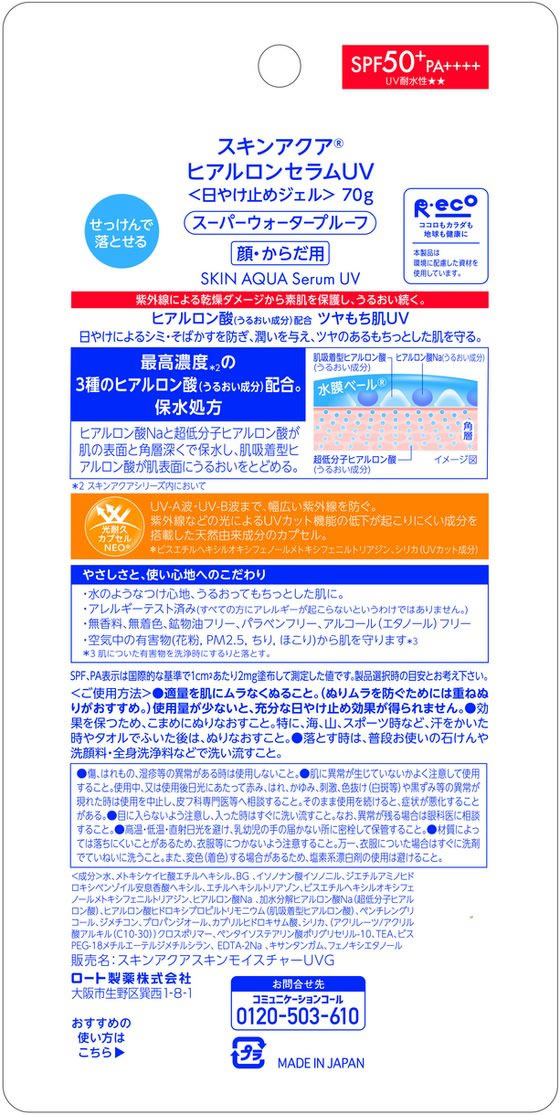 ロート製薬 スキンアクア ヒアルロンセラム UV 70g 1個(ご注文単位1個)【直送品】