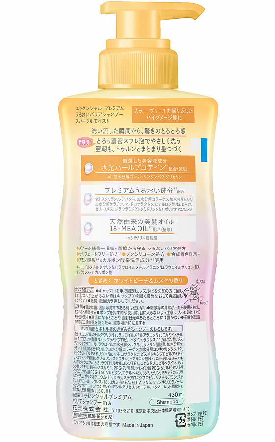 KAO エッセンシャル プレミアム バリアシャンプー モイスト 本体 430mL 1本(ご注文単位1本)【直送品】