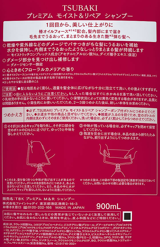 TSUBAKI プレミアム モイスト&リペア シャンプー 詰替 900mL 1個(ご注文単位1個)【直送品】