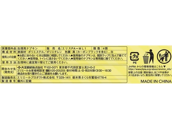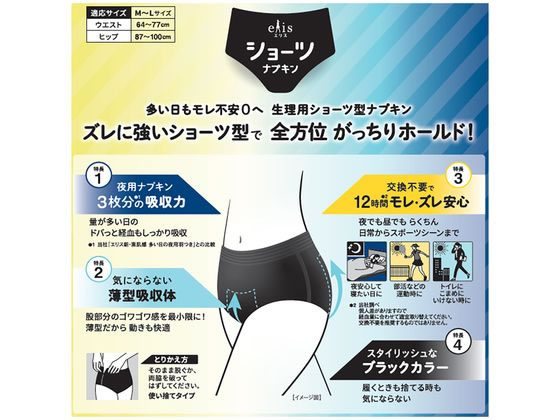 大王製紙 エリス ショーツナプキン M~L 昼・夜長時間用ブラック 4個 1パック(ご注文単位1パック)【直送品】