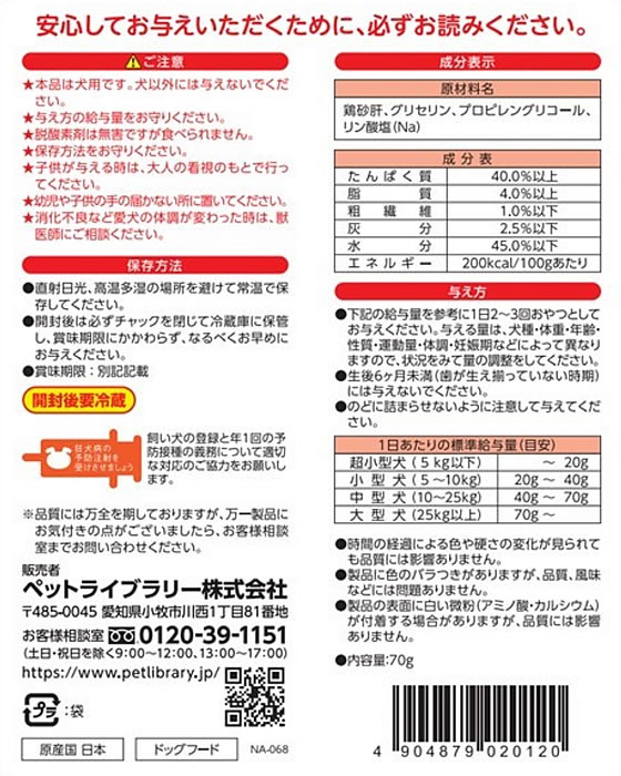 ペットライブラリー 納得素材 砂ぎもソフト70g 1袋(ご注文単位1袋)【直送品】
